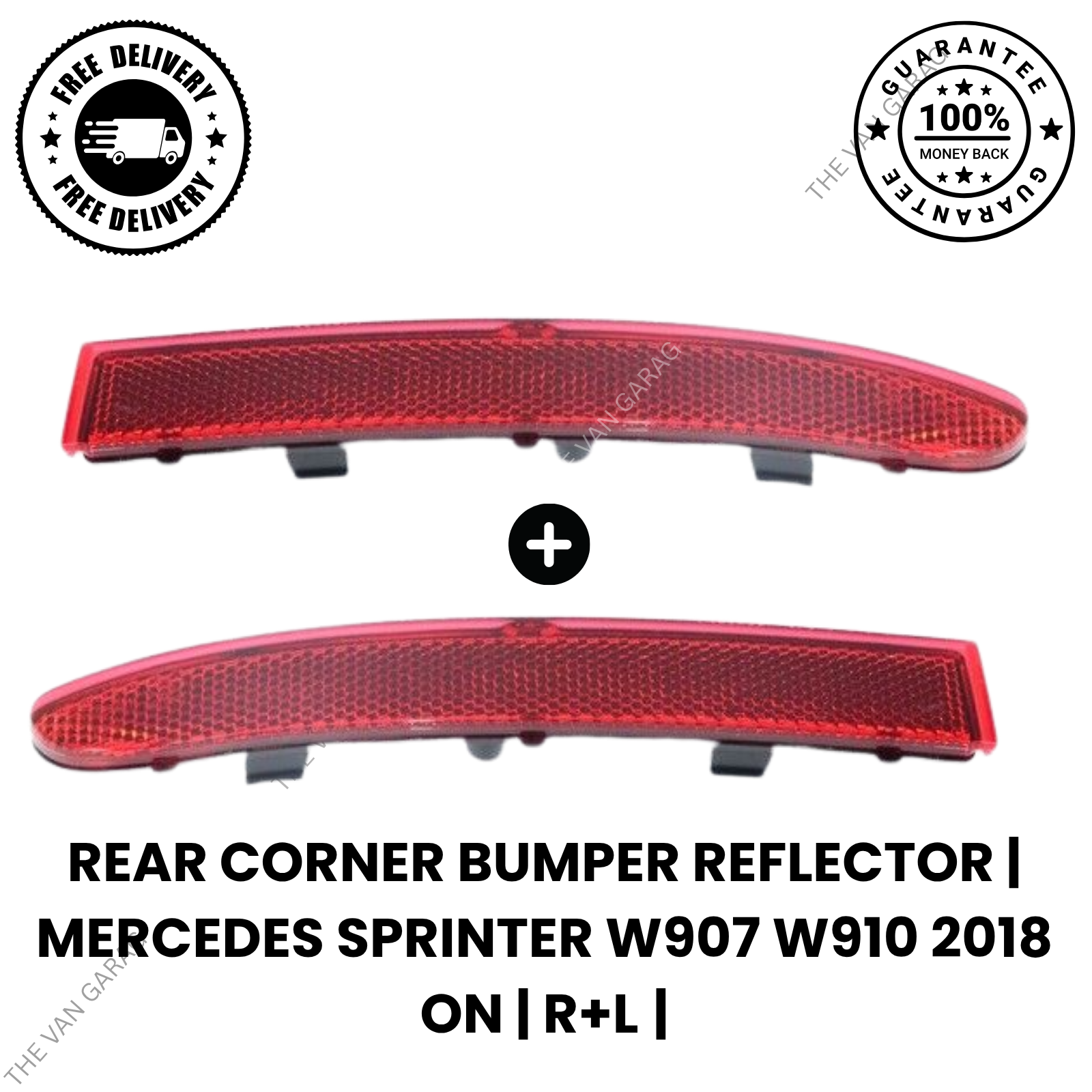 This pair of Rear Red Tail Reflectors is designed to fit the left and right sides of the Mercedes Sprinter W907/W910 models from 2018 onwards. These reflectors enhance rear visibility and safety by reflecting light from other vehicles, especially in low-light conditions.