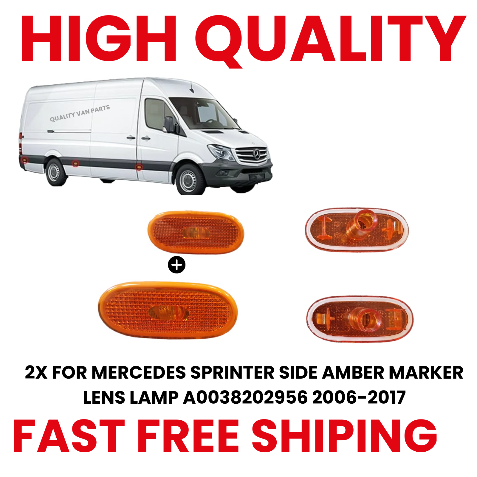 2X FOR MERCEDES SPRINTER SIDE AMBER MARKER LENS LAMP A0038202956 2006-2017