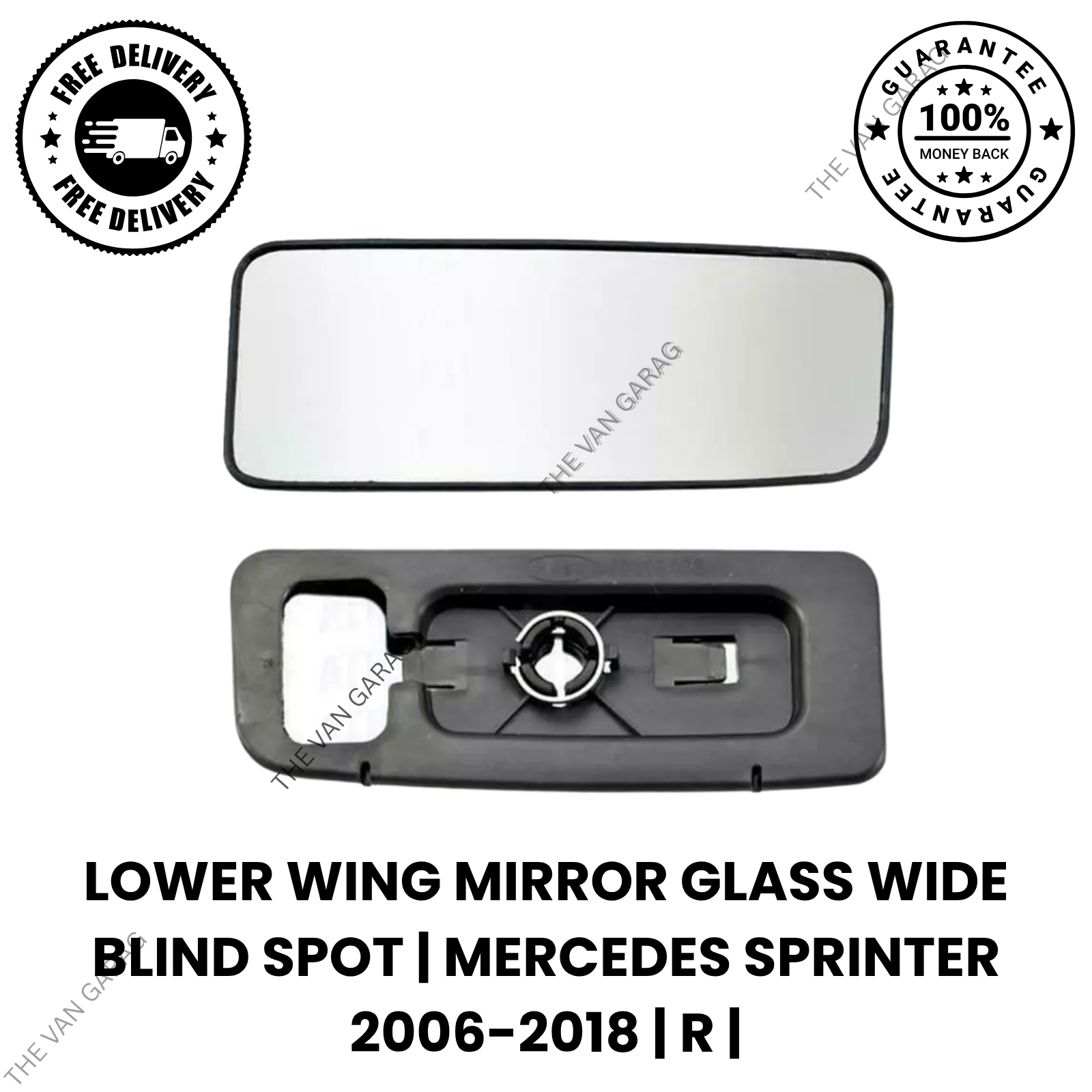 This Lower Small Wing Mirror Glass is designed for the right side (offside) of the Mercedes Sprinter W906. Featuring a wide-angle blind spot design, it enhances driver visibility by significantly reducing blind spots on the passenger side.
