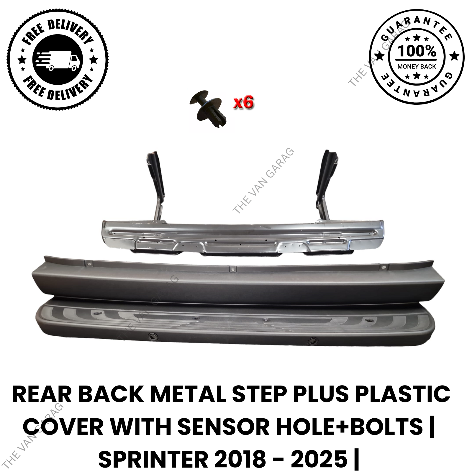 This complete rear step kit is designed to fit Mercedes Sprinter W907 / W910 models from 2018 to 2025+. It includes a heavy-duty steel step, durable anti-slip plastic cover, and 6 mounting clips—everything you need for a solid, factory-style installation.