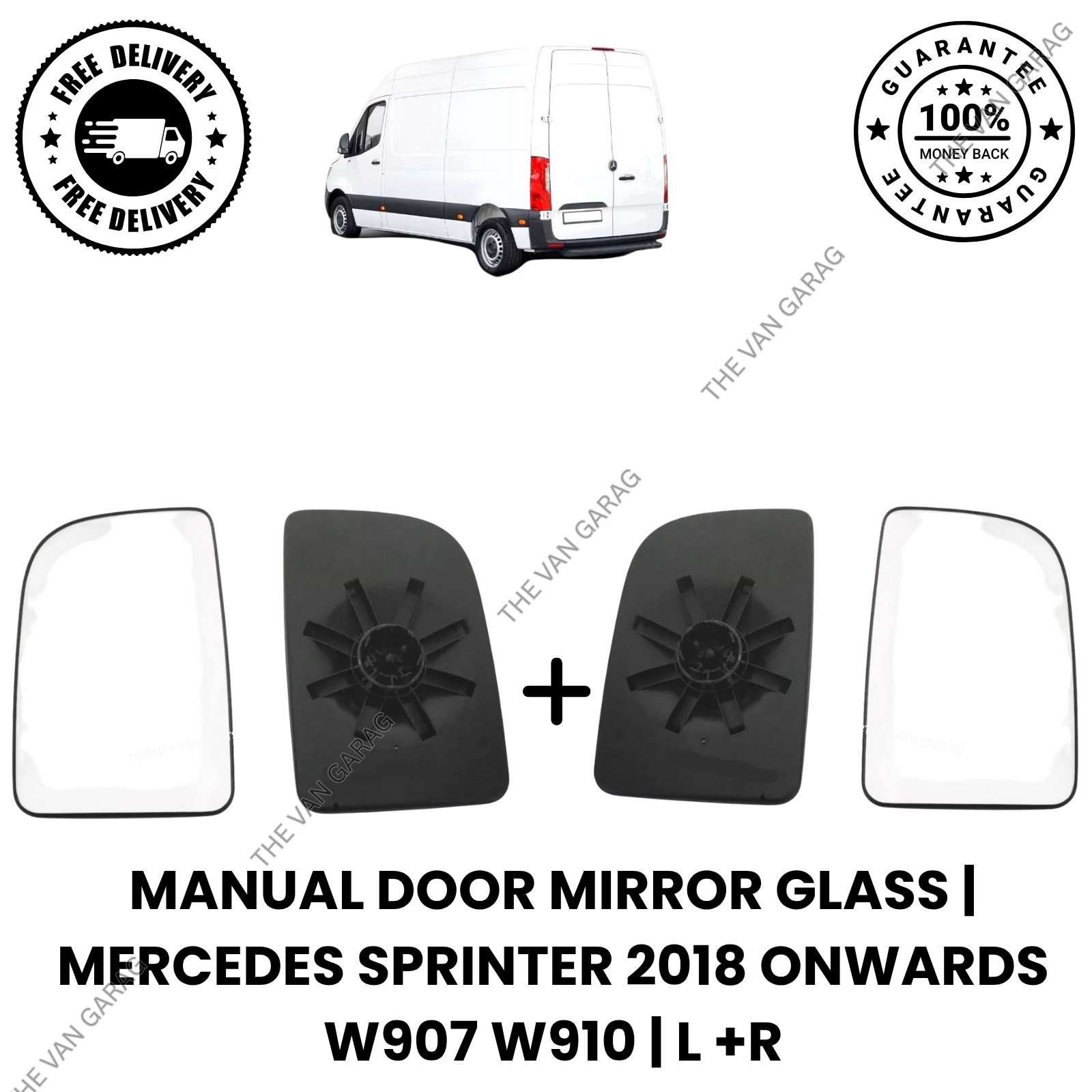 Brand new replacement mirror glass for manual door mirrors. Supplied as a pair – includes both the driver side (O/S) and passenger side (N/S). Designed to fit Mercedes Sprinter models from 2018 onwards.