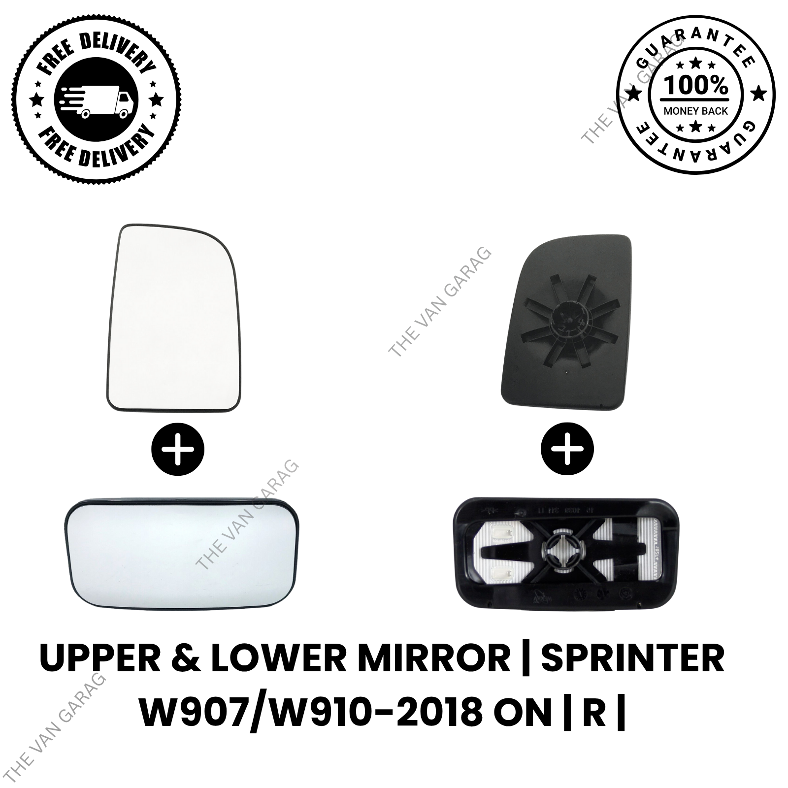This set includes the Upper and Lower Wing Mirror Glass for the right side (offside) of the Mercedes Sprinter models from 2018 onwards. Designed as a direct replacement, these glass pieces restore your mirror’s full functionality and ensure clear, distortion-free visibility for safer driving.