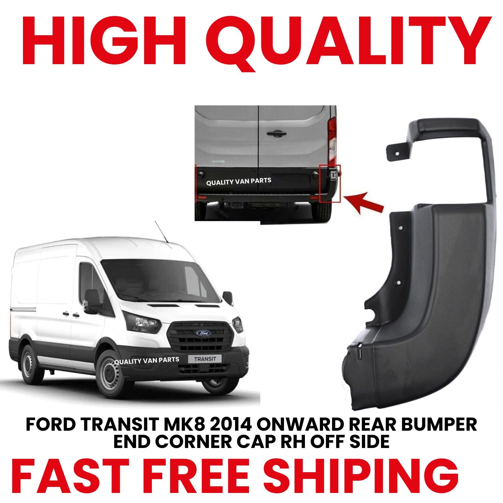 Restore the look and functionality of your van with this Rear Bumper End Corner Cap for the Right/Driver Side (RH) of the Ford Transit Mk8 (2014 Onwards). Designed as a direct replacement, this part fits perfectly and offers a durable, cost-effective solution for damaged or missing bumper corners.
