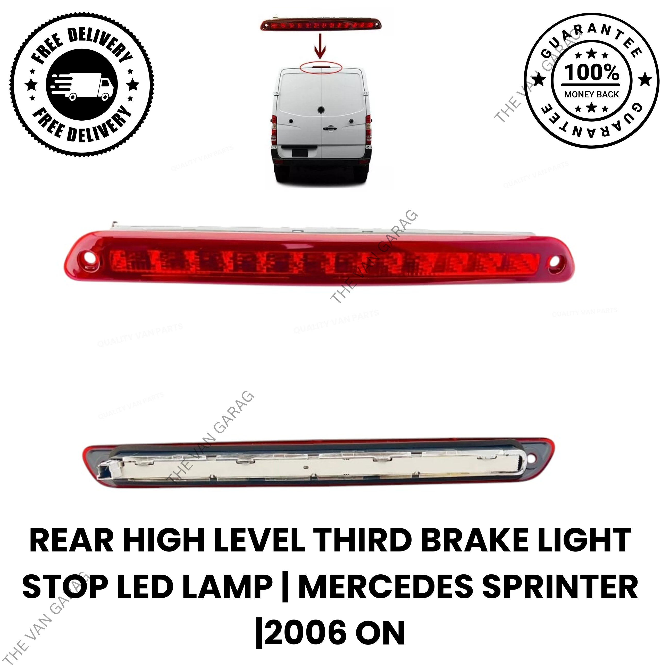 The Mercedes Sprinter Rear High Level Third Brake Light Stop LED Lamp is a direct replacement part designed for 2006–2019 Mercedes-Benz Sprinter models (W906) and 2006–2017 Volkswagen Crafter vans. This LED third brake light enhances visibility and safety by providing a bright, high-mounted stop signal.