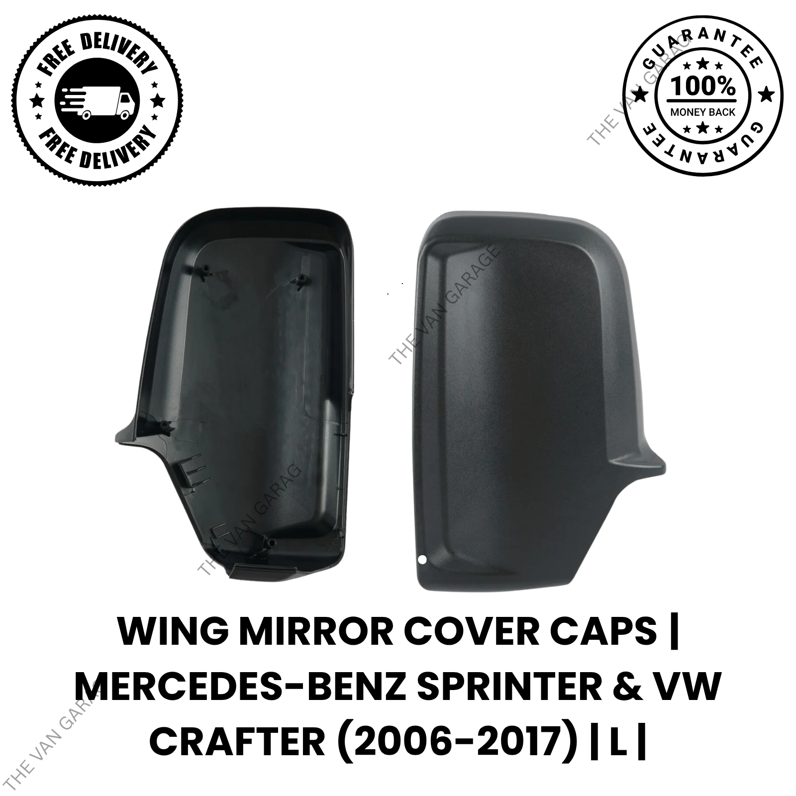 This wing mirror cover cap is designed for the left-hand side of both Mercedes-Benz Sprinter and VW Crafter models from 2006 to 2017. It provides a perfect replacement to restore the mirror’s original appearance and protect the internal components from damage.